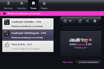 Você não tem dúvidas que o Firefox é o melhor navegador que há, mas acha o visual pouco elegante e gostaria de um esquema de cores diferente? Que tal preto com uns toques de magenta? O SmallringFX DARKMagenta é exatamente isso.